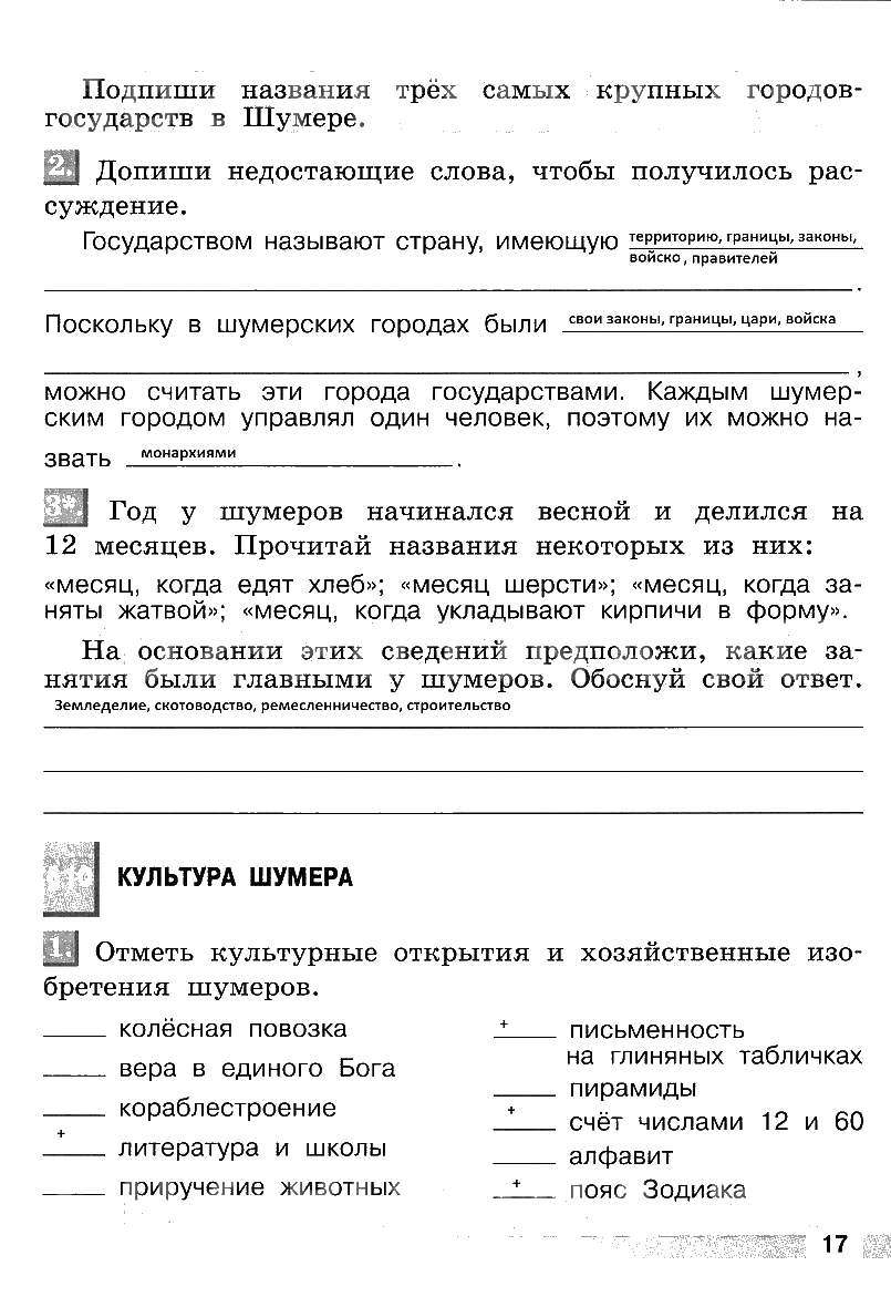 Решения домашних заданий по истории 5 класс Уколова 17 упражнение рабочая тетрадь
