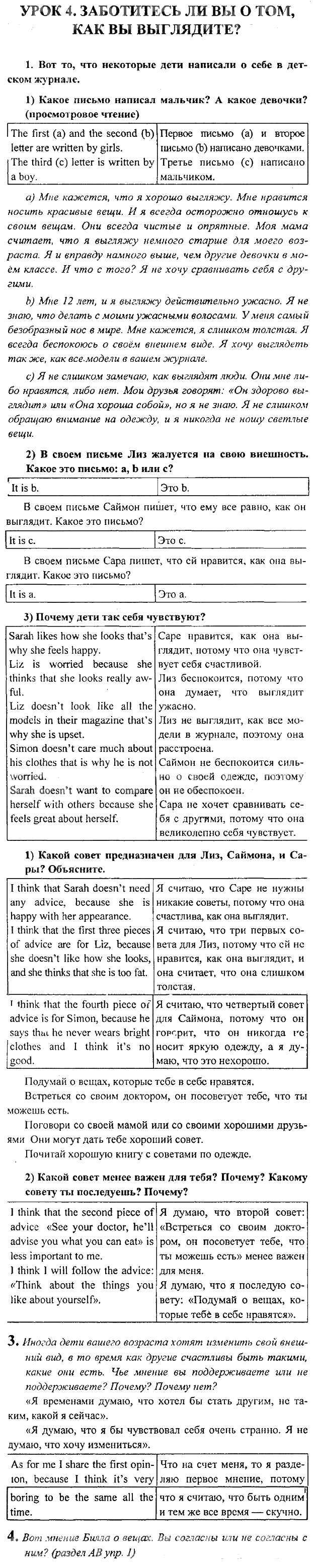 Решения домашних заданий по английскому языку 6 класс Кузовлев Урок 4. Заботитесь ли вы о том, как вы выглядите упражнение Рабочая тетрадь activity book