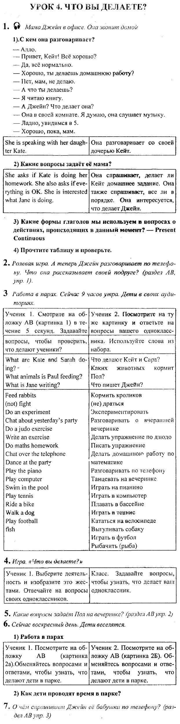 Решения домашних заданий по английскому языку 6 класс Кузовлев Урок 4. Что вы делаете упражнение Рабочая тетрадь activity book
