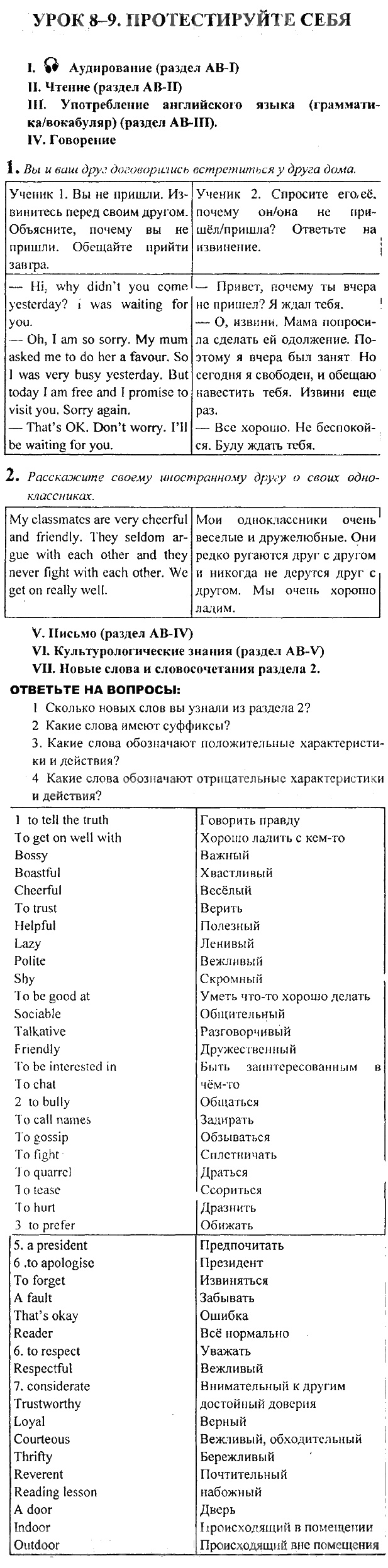 Решения домашних заданий по английскому языку 6 класс Кузовлев Урок 8-9. Протестируйте себя упражнение Рабочая тетрадь activity book