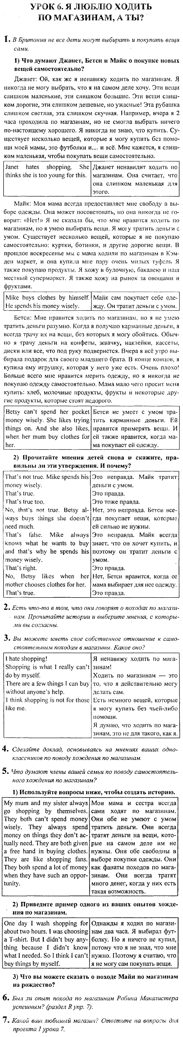 Решения домашних заданий по английскому языку 6 класс Кузовлев Урок 6. Я люблю ходить по магазинам, а ты упражнение Рабочая тетрадь activity book