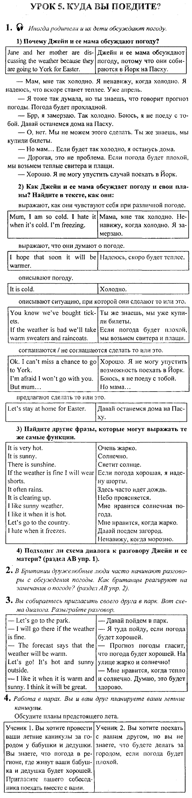 Решения домашних заданий по английскому языку 6 класс Кузовлев Урок 5. Куда вы поедите упражнение Рабочая тетрадь activity book