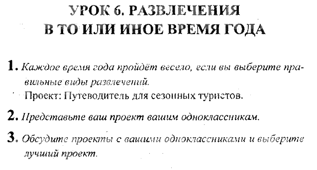 Решения домашних заданий по английскому языку 6 класс Кузовлев Урок 6. Развлечения в то или иное время года упражнение Рабочая тетрадь activity book
