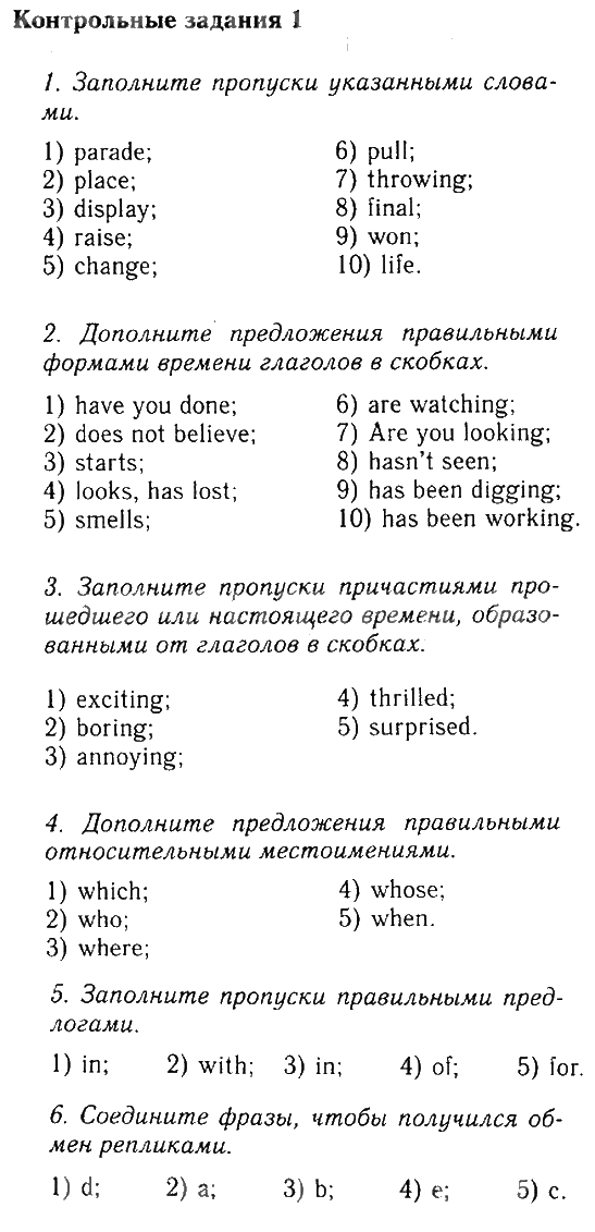 Решения домашних заданий по английскому языку 9 класс Ваулина Контрольные задания 1 упражнение Spotlight (рабочая тетрадь)