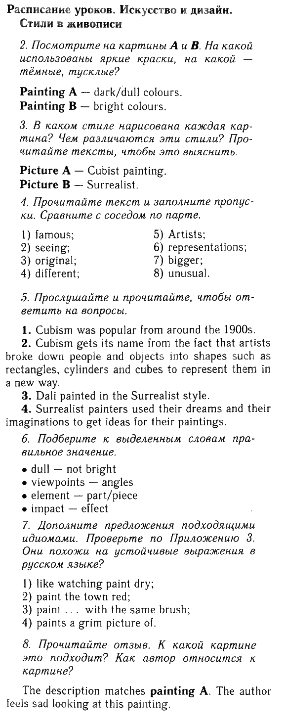 Решения домашних заданий по английскому языку 9 класс Ваулина Расписание уроков. Искусство и дизайн. Стили в живописи упражнение Spotlight (рабочая тетрадь)