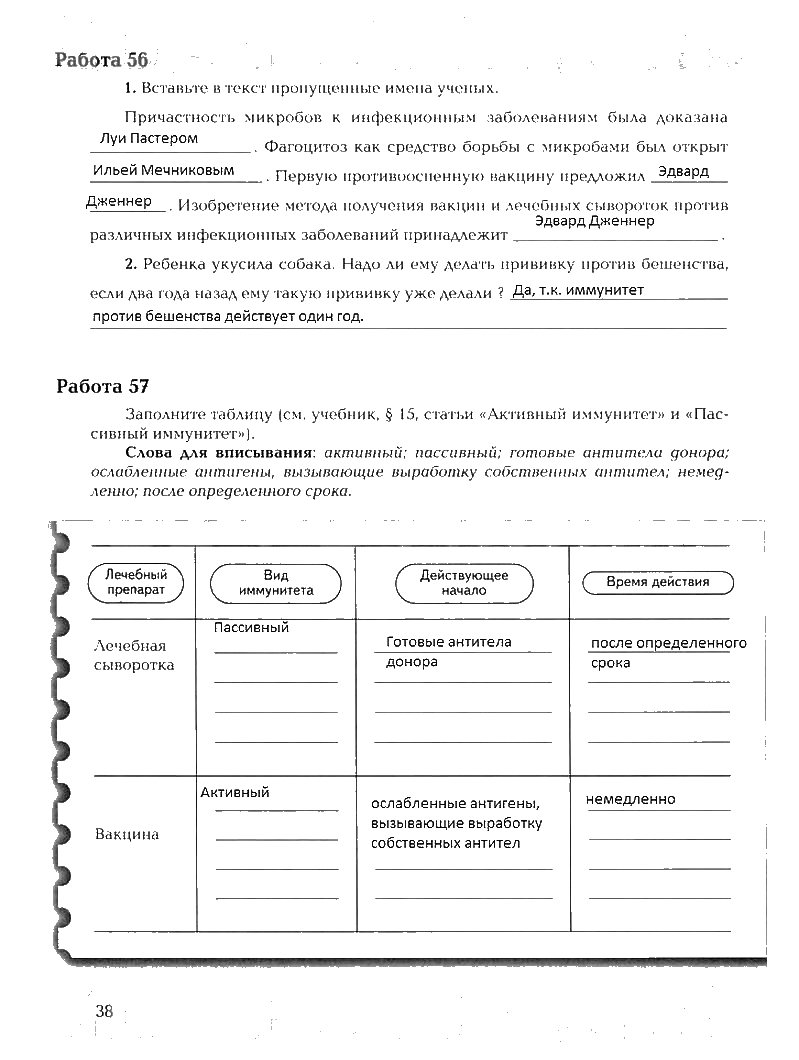 Решения домашних заданий по биологии 8 класс Маш, Драгомилов 38 упражнение рабочая тетрадь 1 и 2 часть
