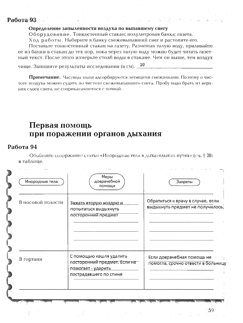 Решения домашних заданий по биологии 8 класс Маш, Драгомилов 59 упражнение рабочая тетрадь 1 и 2 часть