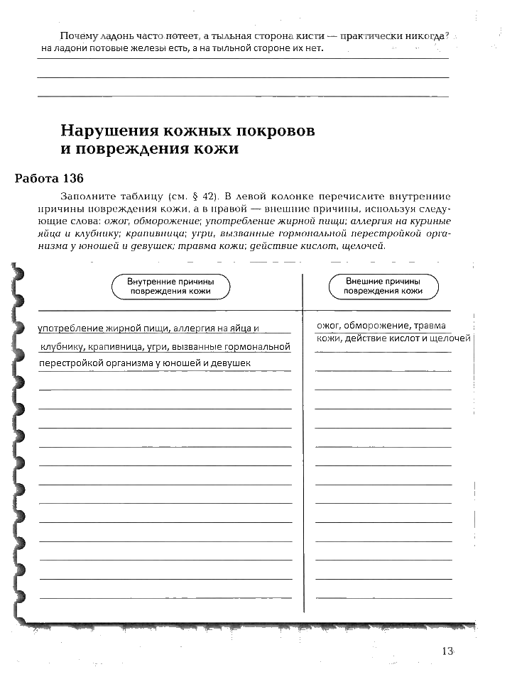 Решения домашних заданий по биологии 8 класс Маш, Драгомилов 13 упражнение рабочая тетрадь 1 и 2 часть