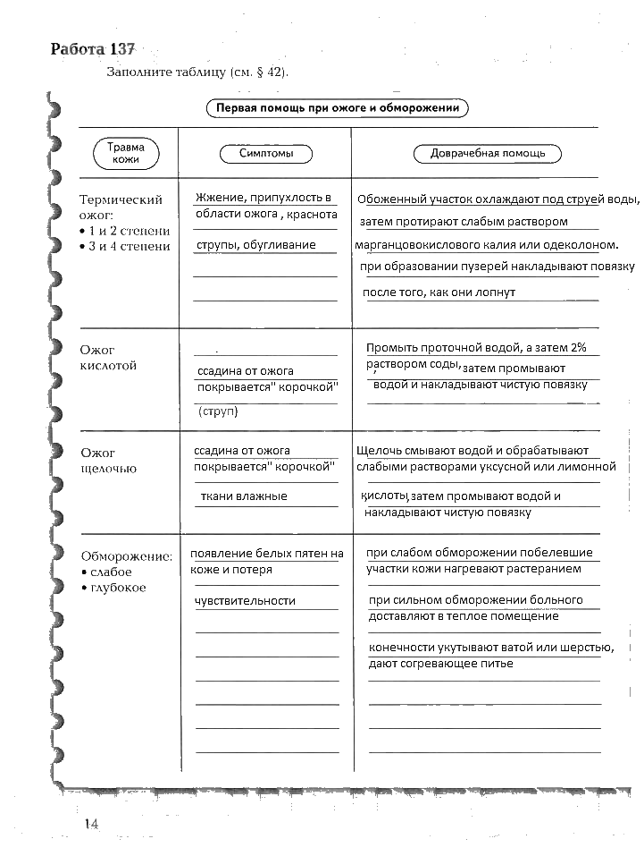 Решения домашних заданий по биологии 8 класс Маш, Драгомилов 14 упражнение рабочая тетрадь 1 и 2 часть
