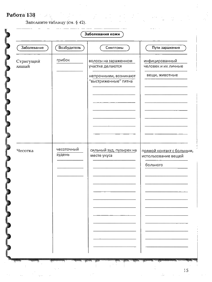 Решения домашних заданий по биологии 8 класс Маш, Драгомилов 15 упражнение рабочая тетрадь 1 и 2 часть