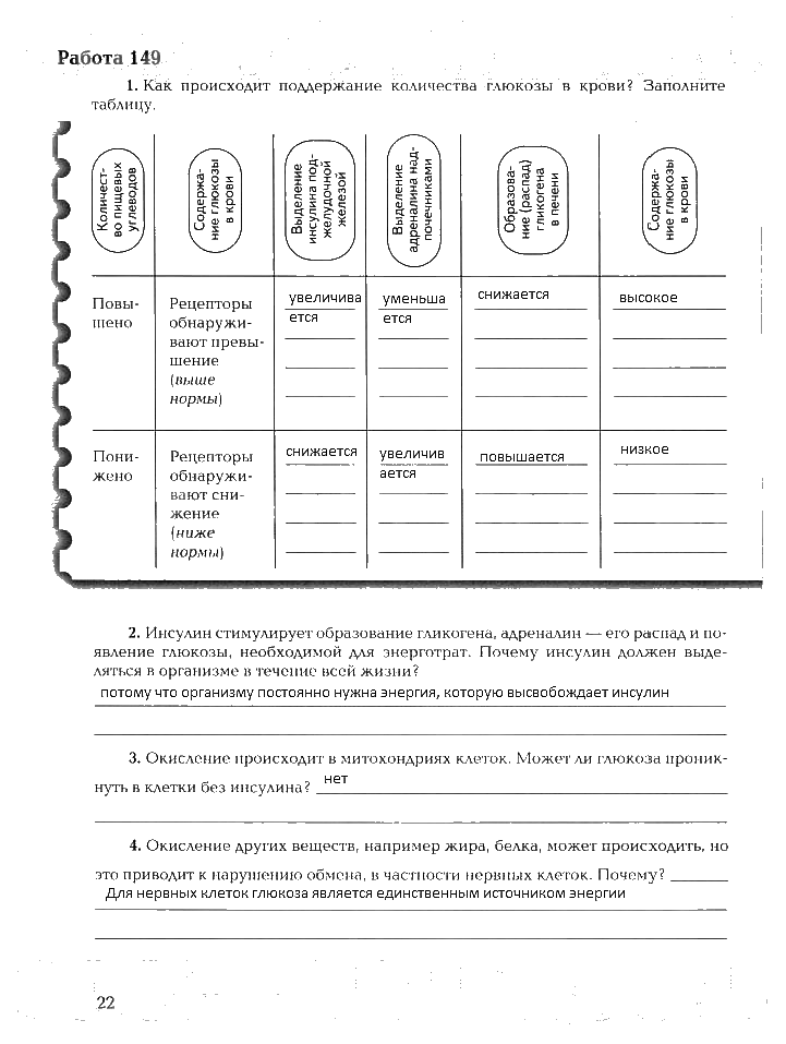 Решения домашних заданий по биологии 8 класс Маш, Драгомилов 22 упражнение рабочая тетрадь 1 и 2 часть