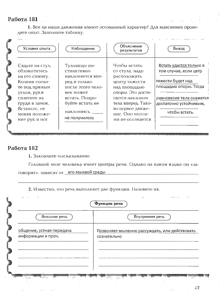 Решения домашних заданий по биологии 8 класс Маш, Драгомилов 47 упражнение рабочая тетрадь 1 и 2 часть