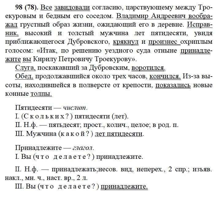 Решения домашних заданий по русскому языку 7 класс Баранов М.Т., Ладыженская Т.А., Тростенцова Л.А. 98 упражнение