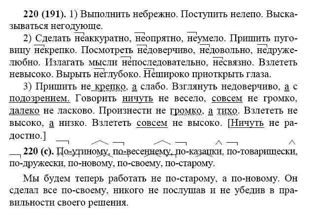 Решения домашних заданий по русскому языку 7 класс Баранов М.Т., Ладыженская Т.А., Тростенцова Л.А. 220 упражнение