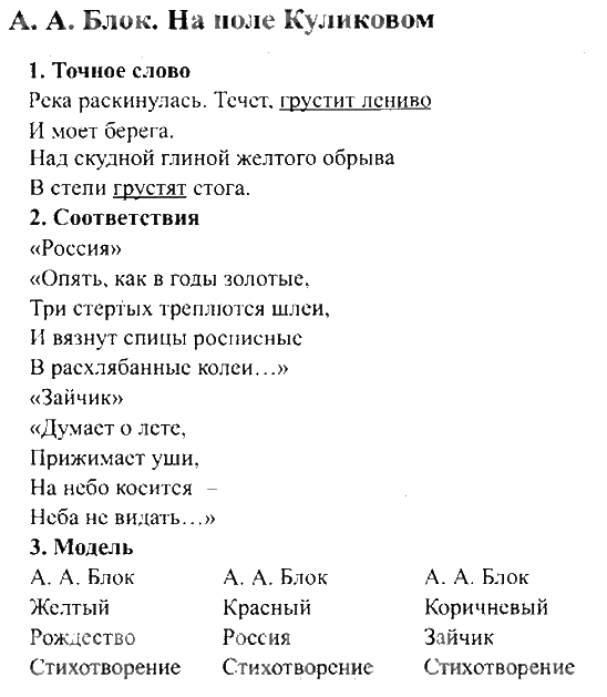 Решения домашних заданий по литературе 4 класс Ефросинина На поле Куликовом упражнение рабочая тетрадь