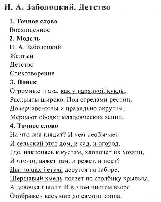 Решения домашних заданий по литературе 4 класс Ефросинина Детство-Заболоцкий упражнение рабочая тетрадь