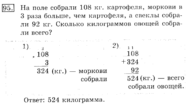 Решения домашних заданий по математике 3 класс Рудницкая, Юдачева 95 упражнение