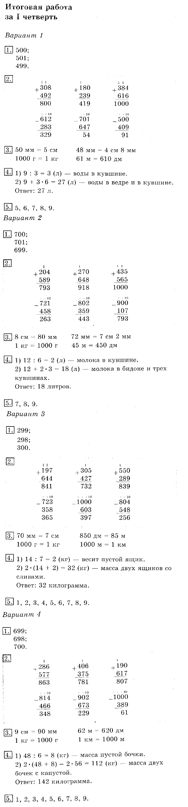 Решения домашних заданий по математике 3 класс Рудницкая, Юдачева Итоговая работа за I четверть упражнение