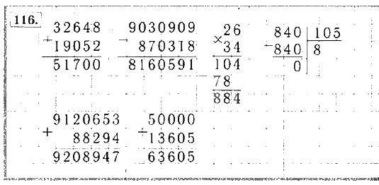 Решения домашних заданий по математике 4 класс Рудницкая, Юдачева 116 упражнение рабочая тетрадь