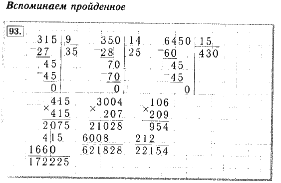 Решения домашних заданий по математике 4 класс Рудницкая, Юдачева 93 упражнение рабочая тетрадь