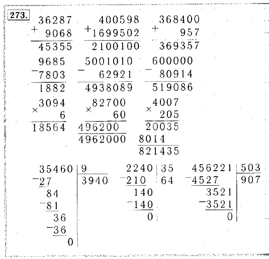 Решения домашних заданий по математике 4 класс Рудницкая, Юдачева 273 упражнение рабочая тетрадь