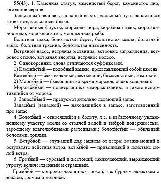 Решения домашних заданий по русскому языку 7 класс Разумовская М.М., Львова С.И., Капинос В.И. 55(43) упражнение