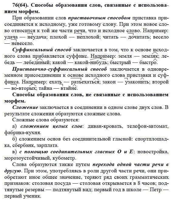 Решения домашних заданий по русскому языку 7 класс Разумовская М.М., Львова С.И., Капинос В.И. 76(64) упражнение