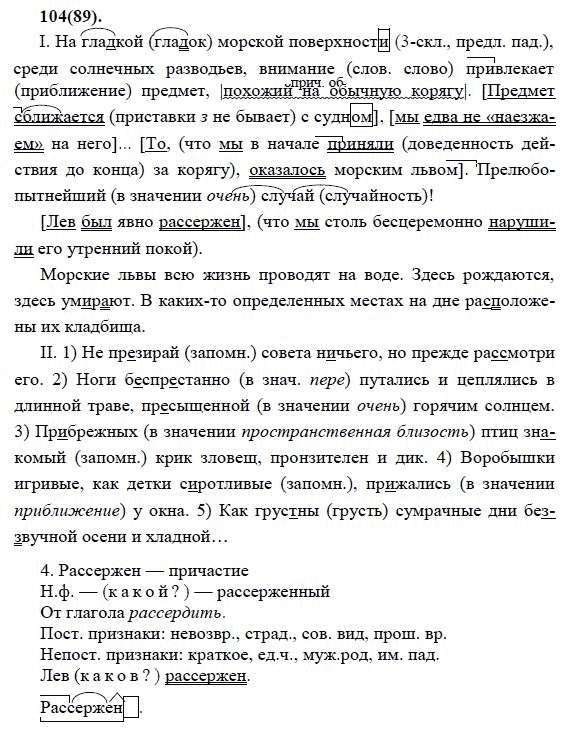 Решения домашних заданий по русскому языку 7 класс Разумовская М.М., Львова С.И., Капинос В.И. 104(89) упражнение