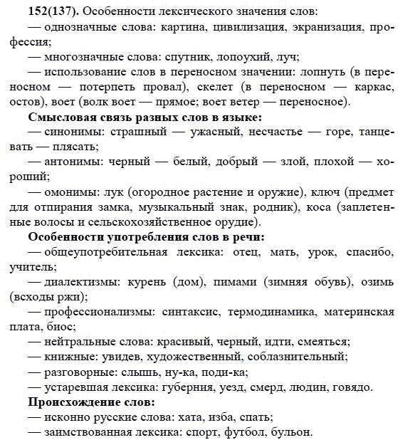 Решения домашних заданий по русскому языку 7 класс Разумовская М.М., Львова С.И., Капинос В.И. 152(137) упражнение