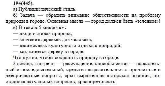 Решения домашних заданий по русскому языку 7 класс Разумовская М.М., Львова С.И., Капинос В.И. 194(445) упражнение