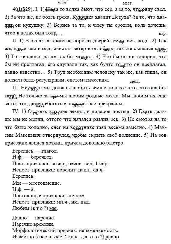 Решения домашних заданий по русскому языку 7 класс Разумовская М.М., Львова С.И., Капинос В.И. 401(329) упражнение