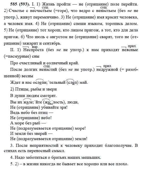 Решения домашних заданий по русскому языку 7 класс Разумовская М.М., Львова С.И., Капинос В.И. 585(593) упражнение