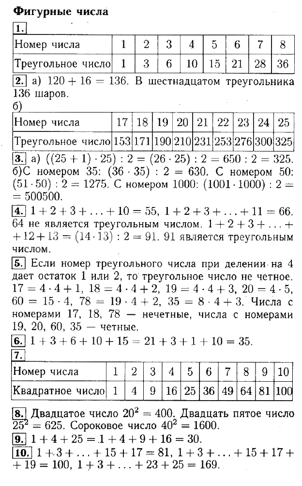 Решения домашних заданий по математике 5 класс Бунимович Фигурные числа упражнение рабочая тетрадь