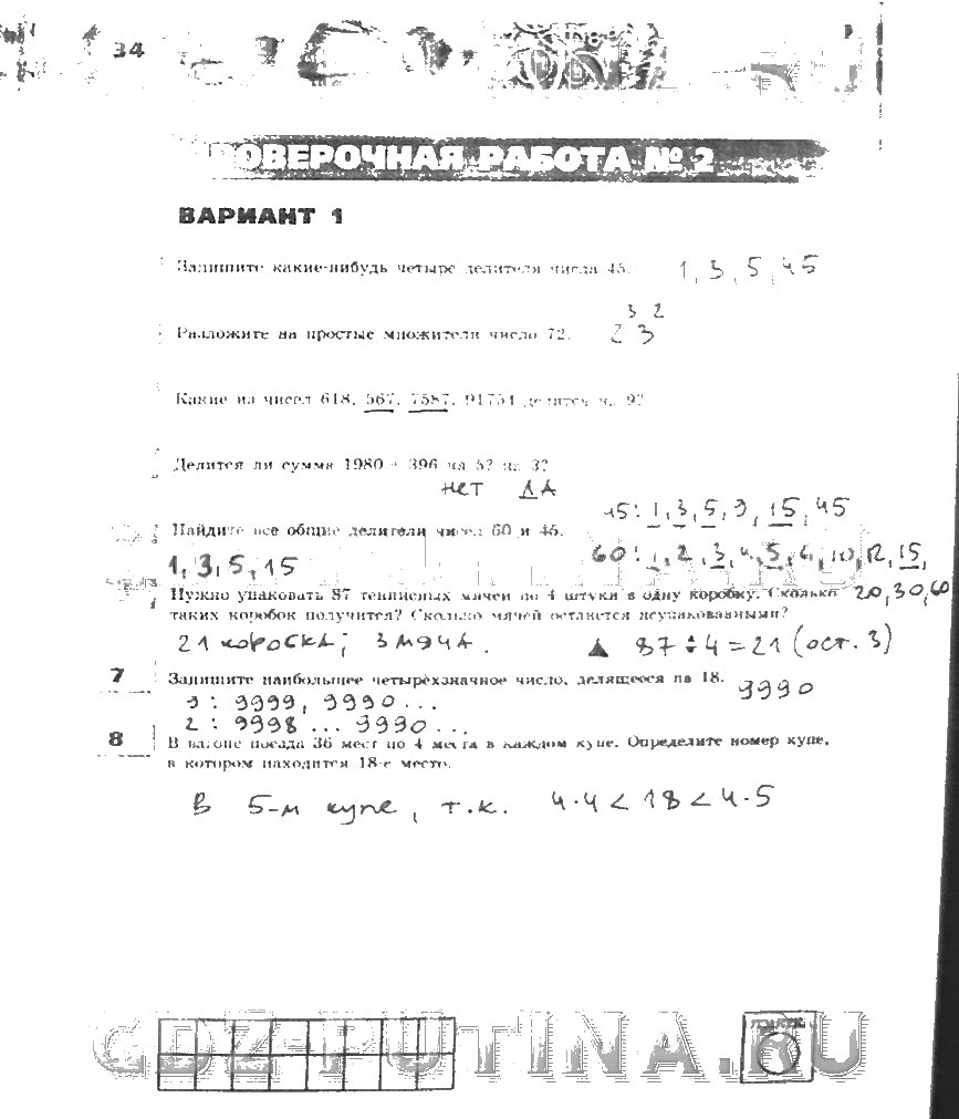Решения домашних заданий по математике 5 класс Бунимович 34 упражнение рабочая тетрадь