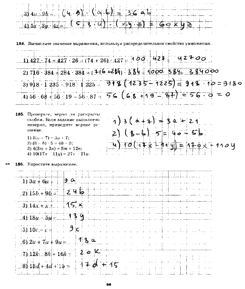 Решения домашних заданий по математике 5 класс Мерзляк, Полонский, Якир 66 упражнение рабочая тетрадь