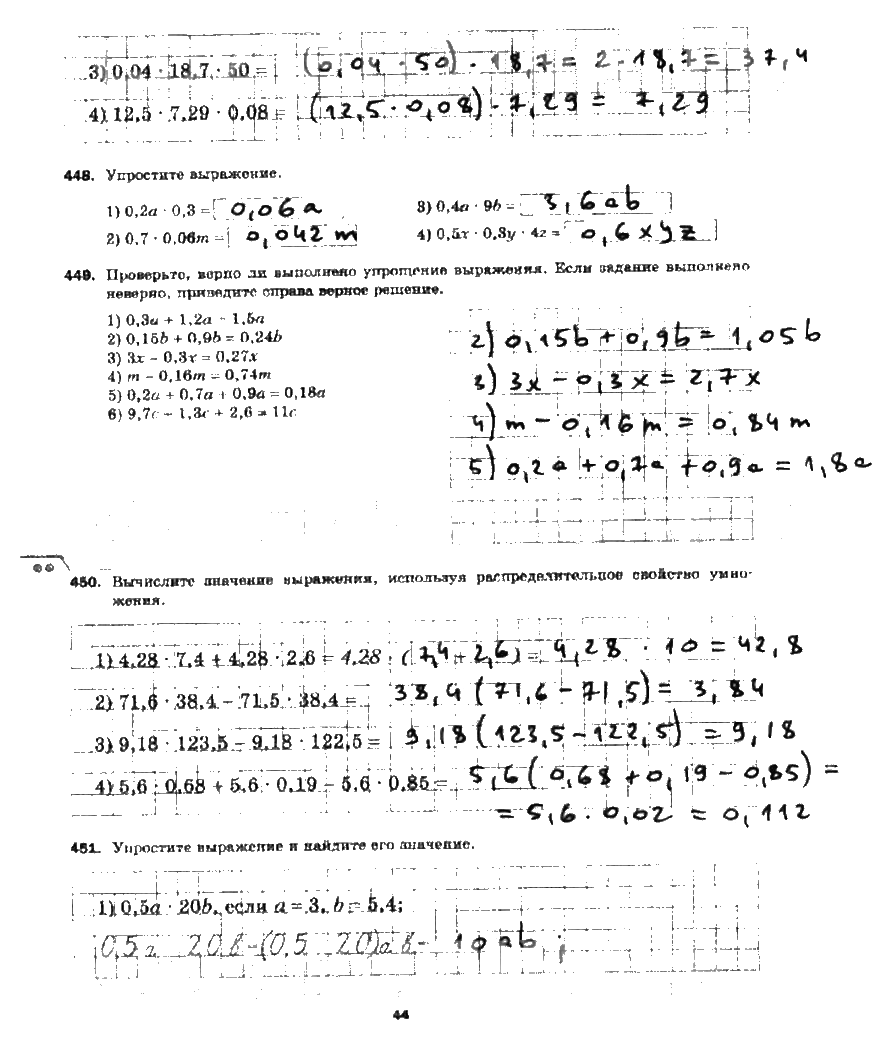 Решения домашних заданий по математике 5 класс Мерзляк, Полонский, Якир 44 упражнение рабочая тетрадь