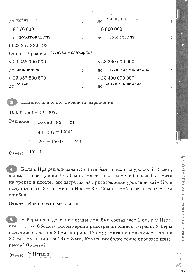 Решения домашних заданий по математике 5 класс Ерина, Зубаревой 37 упражнение рабочая тетрадь