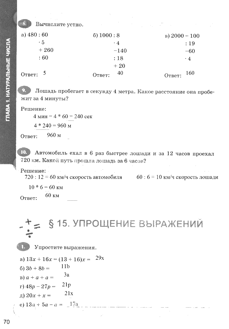 Решения домашних заданий по математике 5 класс Ерина, Зубаревой 70 упражнение рабочая тетрадь