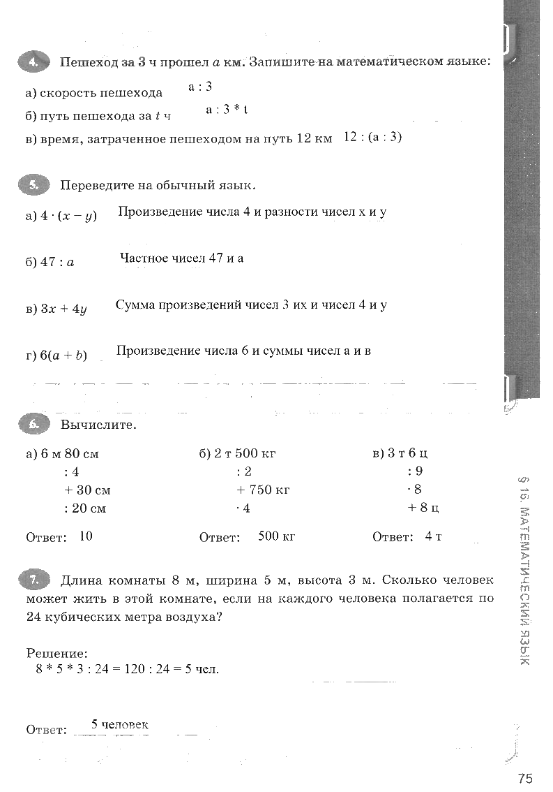 Решения домашних заданий по математике 5 класс Ерина, Зубаревой 75 упражнение рабочая тетрадь