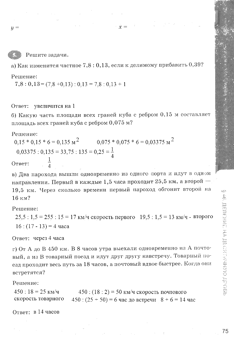 Решения домашних заданий по математике 5 класс Ерина, Зубаревой 75 упражнение рабочая тетрадь