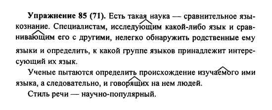 Решения домашних заданий по русскому языку 7 класс Пименова С.Н., Еремеева А.П., Купалова А.Ю. 85(71) упражнение