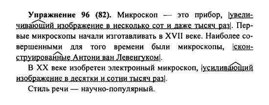 Решения домашних заданий по русскому языку 7 класс Пименова С.Н., Еремеева А.П., Купалова А.Ю. 96(82) упражнение