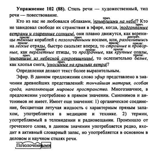 Решения домашних заданий по русскому языку 7 класс Пименова С.Н., Еремеева А.П., Купалова А.Ю. 102(88) упражнение
