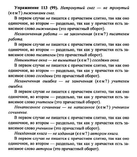 Решения домашних заданий по русскому языку 7 класс Пименова С.Н., Еремеева А.П., Купалова А.Ю. 113(99) упражнение