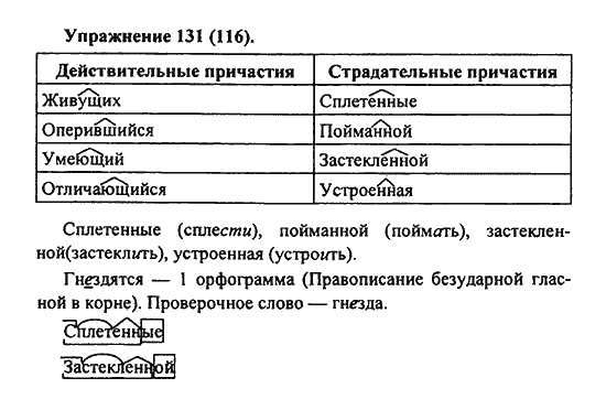 Решения домашних заданий по русскому языку 7 класс Пименова С.Н., Еремеева А.П., Купалова А.Ю. 131(116) упражнение