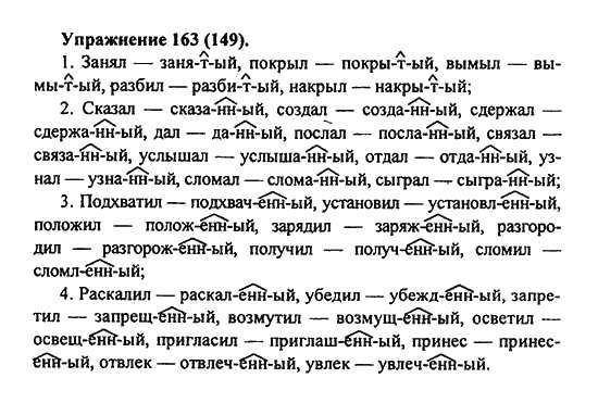 Решения домашних заданий по русскому языку 7 класс Пименова С.Н., Еремеева А.П., Купалова А.Ю. 163(149) упражнение
