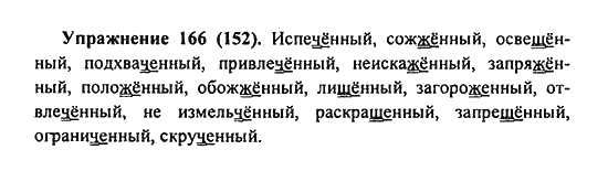 Решения домашних заданий по русскому языку 7 класс Пименова С.Н., Еремеева А.П., Купалова А.Ю. 166(152) упражнение