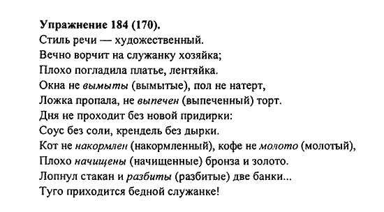 Решения домашних заданий по русскому языку 7 класс Пименова С.Н., Еремеева А.П., Купалова А.Ю. 184(170) упражнение