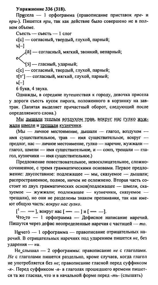 Решения домашних заданий по русскому языку 7 класс Пименова С.Н., Еремеева А.П., Купалова А.Ю. 336(318) упражнение