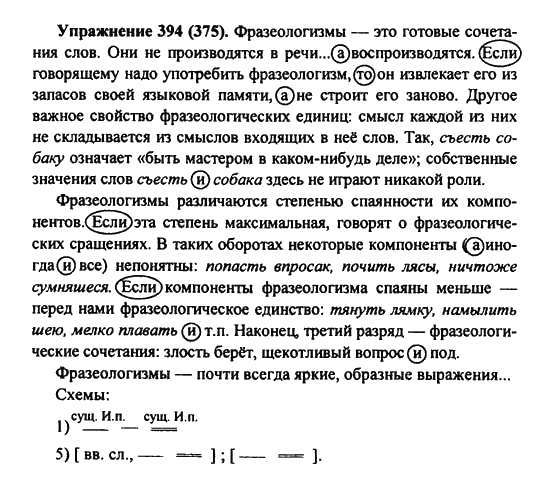 Решения домашних заданий по русскому языку 7 класс Пименова С.Н., Еремеева А.П., Купалова А.Ю. 394(375) упражнение